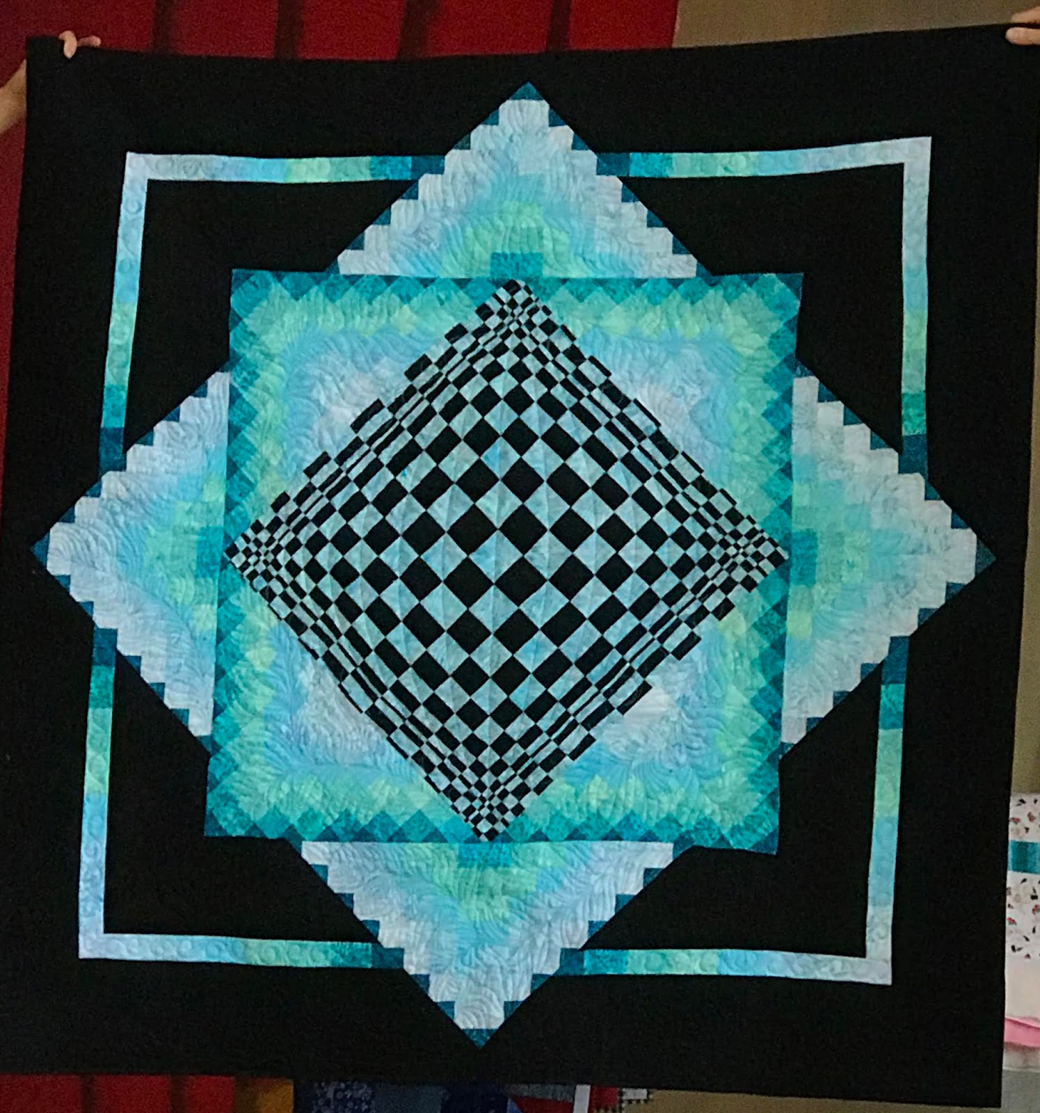 Here Nancy shows us how different the same pattern looks in different fabrics. The blue one below is for a friend battling cancer.